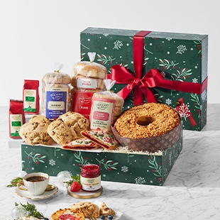 Make Christmas morning unforgettable with holiday breakfast gifts filled with bakery favorites. Choose from our signature English muffins, flaky pastries, scones, and savory items like ham and cheese croissants. These gourmet assortments are perfect for Christmas brunch or as thoughtful food gift baskets delivered nationwide.