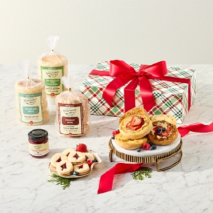 Enjoy an authentic taste of Great Britain with this traditional spread. Delicious, crumbly scones with juicy sultanas, a creamy double Devon cream, and sweet blackcurrant conserves are all made in the United Kingdom. See for yourself why this assortment is a beloved favorite for brunch, teatime, or any time.